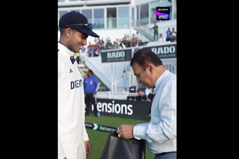 IND vs ENG 5th Test: भारतीय कप्तान शुभमन गिल को सरप्राइज गिफ्ट देते सुनील गावस्कर। (फोटो स्क्रीनशॉट)