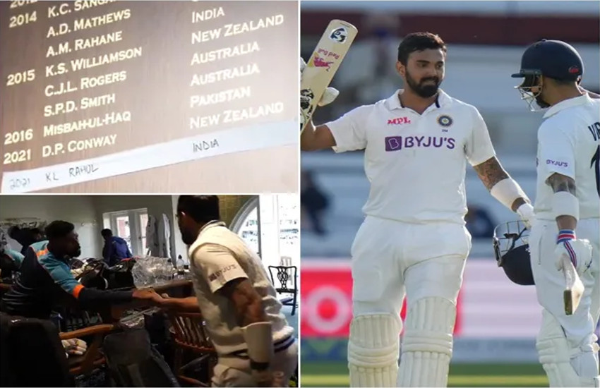 इंग्लैंड के खिलाफ दूसरे टेस्ट के पहले दिन जब केएल राहुल ने शतक लगाया तो 2014 के बाद यह पहला मौका था जब किसी भारतीय ने लॉर्ड्स के मैदान पर शतक लगाया। इसी के साथ केएल राहुल का नाम लॉर्ड्स के ऑनर बोर्ड पर दर्ज हो गया है। टीम इंडिया के हर एक खिलाड़ी ने केएल राहुल को बधाई दी। जब पहले दिन का खेल खत्म हुआ तो ड्रेसिंग रूम में मौजूद टीम इंडिया से जुड़ा हर शख्स राहुल के स्वागत के लिए खड़ा नजर आया।