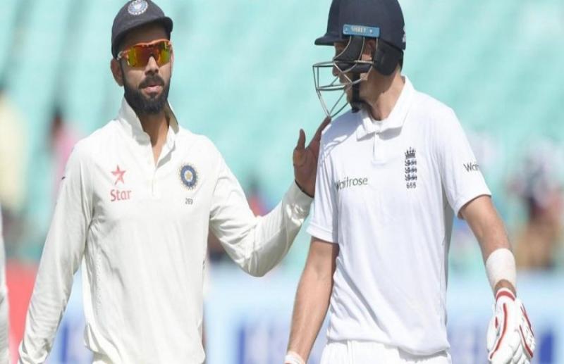 नई दिल्ली । इंग्लैंड और भारत के बीच चल रहे पहले टेस्ट मैच में एक नया तड़का लग गया है । पहले वनडे सीरीज में जो रुत ने जिस कहानी का आगाज किया था । उस कहानी में कल भारतीय कप्तान विराट कोहली ने एक नया पन्ना लिख दिया । भारतीय कप्तान ने जो रुत द्वारा माइक ड्रॉप चैलेंज को एक नया रूप देते हुए । रूट को राण आउट करने के बाद हाथ से कुछ ऐसा इशारा किया जैसे वो माइक को गिरा रहे हैं । इसके साथ ही उन्होंने मुस्कुराते हुए रूट को प्यार भी भेजा ।