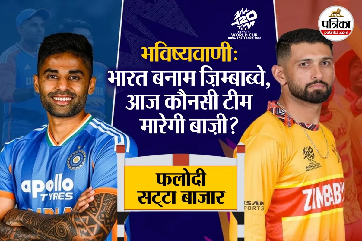भारत (India) आज, गुरुवार, 26 फरवरी को ज़िम्बाब्वे (Zimbabwe) के खिलाफ टी20 वर्ल्ड कप (T20 World Cup) 2026 में सुपर-8 का मैच खेलेगी। यह मैच चेन्नई के एमए चिदंबरम स्टेडियम में खेला जाएगा। भारतीय टीम के लिए यह करो या मरो वाला मुकाबला होगा, क्योंकि पिछले मैच में साउथ अफ्रीका (South Africa) के खिलाफ हार झेलने के बाद भारत के लिए सेमीफाइनल में पहुंचने की उम्मीद को ज़िंदा रखने के लिए ज़िम्बाब्वे के खिलाफ हर हाल में जीतना ज़रूरी है। भारतीय टीम के लिए बड़ी जीत दर्ज करना भी ज़रूरी है, क्योंकि इससे टीम की रनरेट में भी सुधार होगा। मैच से पहले राजस्थान के फलोदी सट्टा बाजार (Phalodi Satta Bazar) ने इस बात की भविष्यवाणी की है कि भारत बनाम ज़िम्बाब्वे (IND vs ZIM) में कौनसी टीम जीत हासिल करेगी।