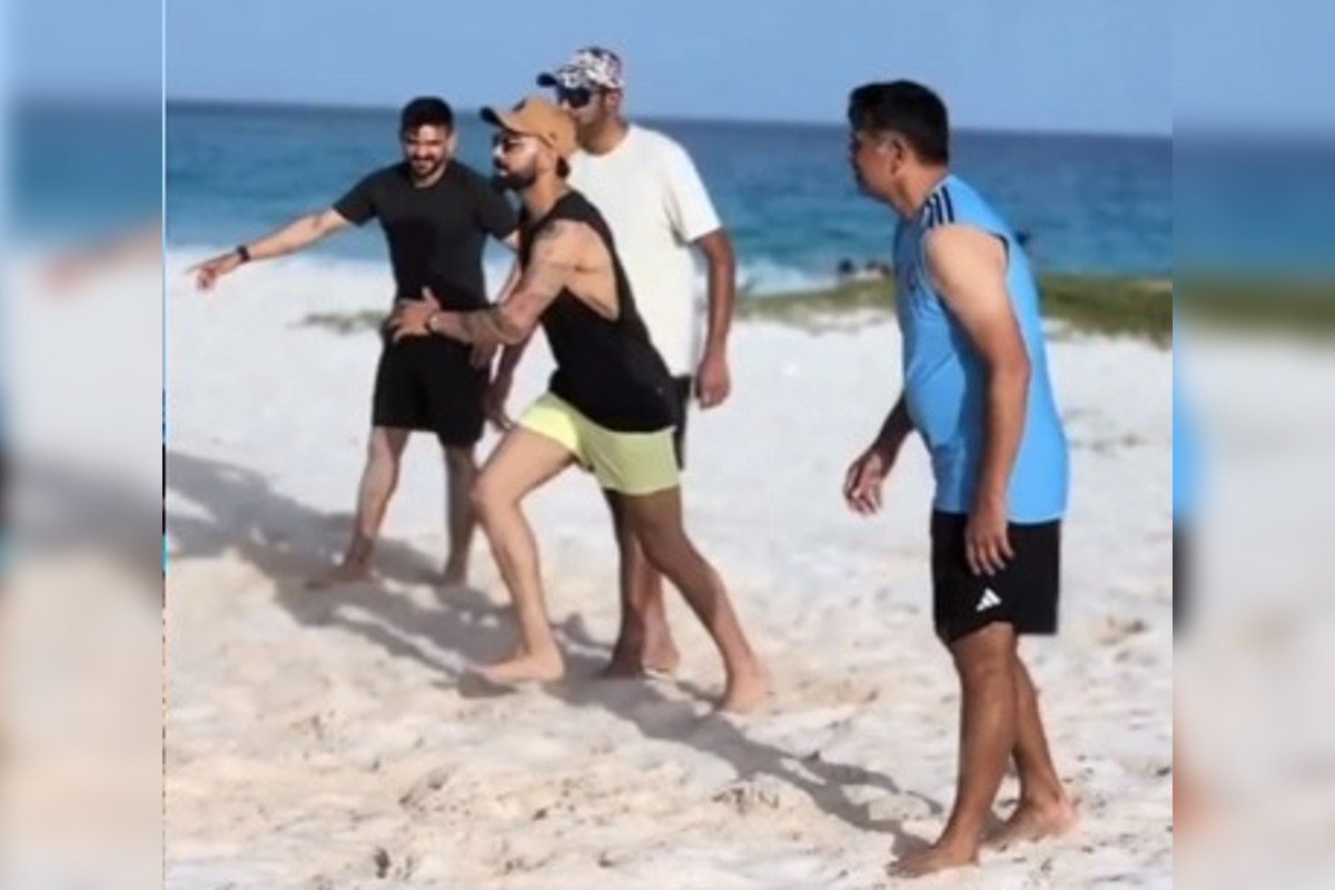 बारबाडोस बीच पर खिलाड़ी वॉलीबॉल खेलते नजर आ रहे हैं। विराट कोहली, यशस्वी जायसवाल, मोहम्मद सिराज और अजिंक्य रहाणे आदि टीम इंडिया के हेड कोच राहुल द्रविड़ और कोचिंग स्टाफ वॉलीबॉल खेल रहा है। वहीं ईशान किशन इसका वीडियो बनाने में बिजी हैं। बता दें कि आज ही टीम इंडिया का पहला अभ्यास कैंप है।