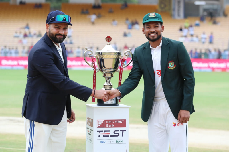 India vs Bangladesh, 2nd Test Day 1: भारत और बांग्लादेश के बीच खेली जा रही दो मैचों की टेस्ट सीरीज़ का दूसरा मुक़ाबला कानपुर के ग्रीन पार्क में खेला जा रहा है। इस मैच में भारतीय कप्तान रोहित शर्मा ने टॉस जीतकर पहले गेंदबाजी करने का फैसला किया है। कानपुर में रात भर बारिश हुई है। जिसके चलते मैदान गीला हो गया था और टॉस में देरी हुई है।