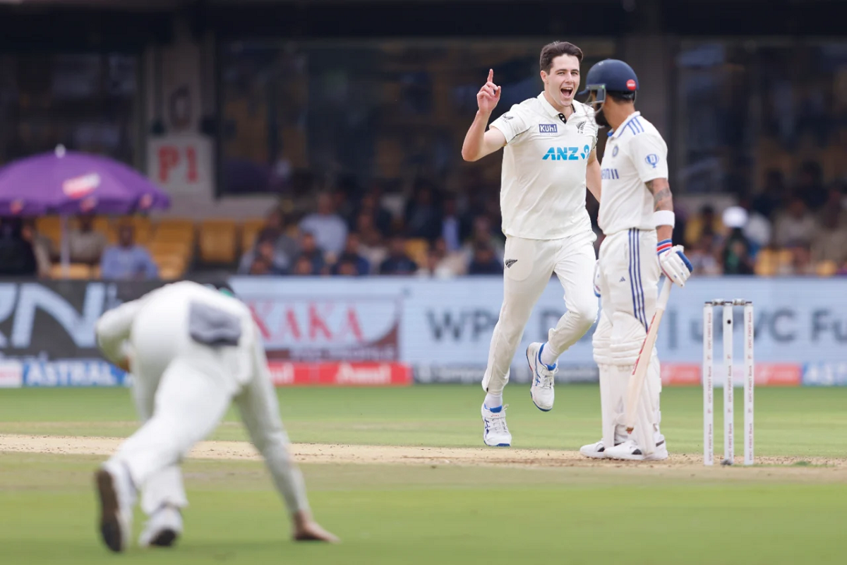 India vs New Zealand, 1st Test day 2 Lunch: भारत और न्यूजीलैंड के बीच खेली जा रही तीन मैचों की टेस्ट सीरीज का पहला मुक़ाबला बेंगलुरु के एम चिन्नास्वामी स्टेडियम में खेला जा रहा है। बारिश से वधित इस मैच के दूसरे दिन कीवी तेज गेंदबाजों का कहर देखने को मिला। भारत ने दूसरे दिन लंच तक अपनी पहली पारी में छह विकेट गंवाकर 34 रन बना लिए हैं।