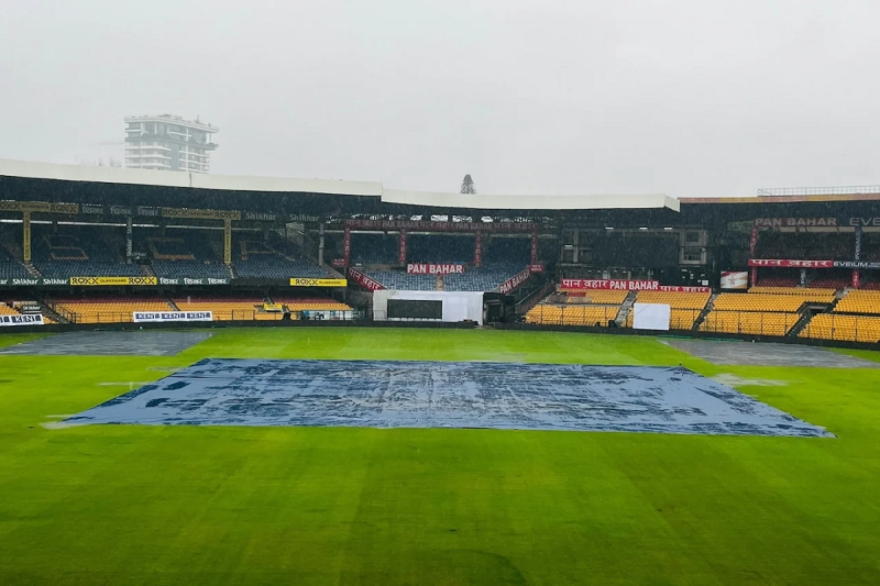 India vs New Zealand, 1st Test: भारत और न्यूजीलैंड के बीच खेली जाने वाली तीन मैचों की टेस्ट सीरीज का पहला मुक़ाबला आज यानि बुधवार 16 अक्टूबर से खेला जा रहा है। बेंगलुरु के एम चिन्नास्वामी स्टेडियम में खेला जा रहे इस मुक़ाबले के टॉस में बारिश के चलते देरी हो रही है। फिलहाल पिच और मैदान को कवर्स से ढका गया है और अभी तेज़ बारिश हो रही है।