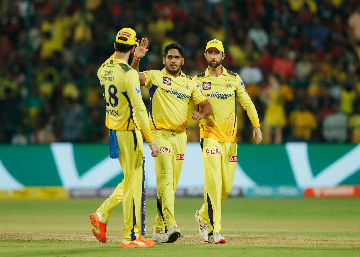 वही कॉन्वे ने 45 गेंदों में 83 रनों की अद्भुत पारी खेली। जिसमें 6 चौके और 6 छक्के शामिल थे। चौथे नंबर पर उतरे शिवम दुबे ने भी बेंगलुरु के गेंदबाजों की जमकर खबर ली और 27 गेंदों में 52 रन कूट दिए। जिसमें 2 चौके और 5 छक्के शामिल थे और इस दौरान उनका स्ट्राइक रेट लगभग 193 का रहा। चेन्नई ने निर्धारित 20 ओवर में 6 विकेट के नुकसान पर 226 रन बनाए।
