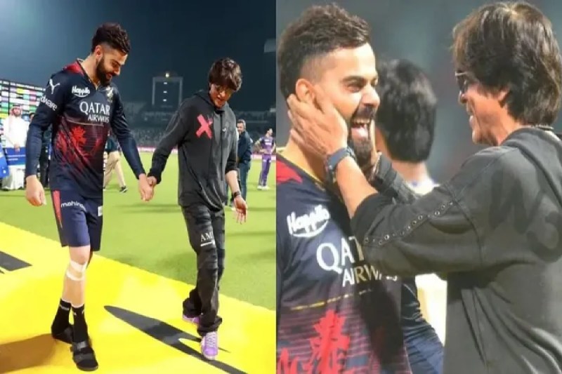 ipl 2023 Virat Kohli Sharukh Khan dance :आईपीएल 2023 में गुरुवार ( 6 अप्रैल ) रात को खेले गए मुकाबले में केकेआर ने आरसीबी को 81 रनों के विशाल अंतर से हराया। इस मुकाबले में पहले बल्लेबाजी करते हुए केकेआर के बल्लेबाजों ने आरसीबी के गेंदबाजों को आड़े हाथों लिया और बाद में स्पिनर का जादू चला और आरसीबी की टीम तितर-बितर हो गई। अपनी टीम की इस धमाकेदार जीत के बाद बॉलीवुड एक्टर शाहरुख खान बेहद खुश नजर आए उन्होंने मैच के बाद मैदान पर आकर फैंस का अभिवादन तो किया ही साथ ही जमकर डांस भी किया। वह विराट के साथ झूमे जो पठान सॉन्ग पर नाचते नजर आए। पूरे मैच के दौरान क्रिकेट प्रेमियों की नजरें एक ओर मैदान पर थी तो दूसरी ओर शाहरुख खान को भी देखने का एक भी मौका फैंस नहीं छोड़ रहे थे।