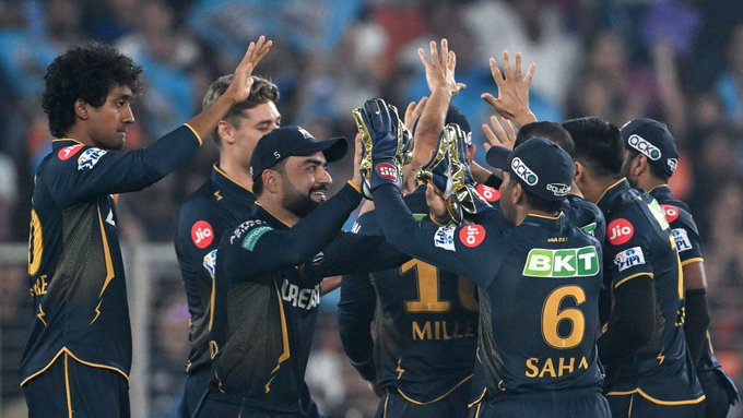 मुंबई इंडियंस के कप्तान हार्दिक पंड्या ने टॉस जीता और पहले गेंदबाजी करने का फैसला किया। ऋद्धिमान साहा ने शुभमन गिल के साथ पारी की शुरुआत की। दोनों ने 31 रन की साझेदारी और जसप्रीत बुमराह ने टाइटंस को पहला झटका दिया। 8वें ओवर में गिल भी 31 रन बनाकर चलते बने। इसके बाद साई सुदर्शन ने मोर्चा संभाला और 39 गेंदों में 45 रन की पारी खेली। राहुल तेवतिया ने 15 गेंदों में 22 रन जड़कर टीम को एक चुनौतीपुर्ण स्कोर तक पहुंचाया।