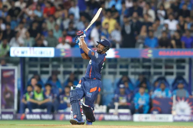 एक छोर केएल राहुल ने संभाल कर रखा और निकोलस पूरन ने आकर तेजी से रन बनाना शुरू किया। पूरन ने 19 गेंदों अपना अर्धशतक पूरा किया और सिर्फ 29 गेंदों में 8 छक्के और 5 चौकों की मदद से 75 रन ठोक दिए और नुवान तुषारा की गेंद पर आउट हुए। आयुश बदोनी ने 10 गेंदों में 22 और क्रुणाल पंड्या ने 7 गेंदों में 12 रन बनाए। केएल राहुल ने 41 गेंदों में 55 रन की पारी खेली और टीम को 214 तक पहुंचाने में महत्वपूर्ण भूमिका निभाई।