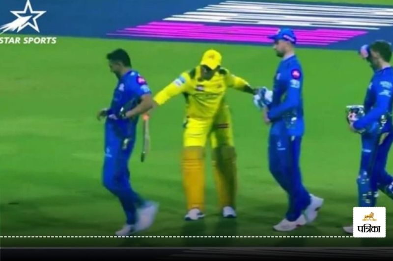 आईपीएल 2025 का तीसरा मुकाबला खत्म होने के बाद दोनों टीमों के खिलाड़ी मैदान पर हाथ मिला रहे थे। इस बीच जब दीपक चाहर ने धोनी की तरफ हाथ बढ़ाते हुए कुछ कहा। इस पर धोनी ने उनको बैट से मारा। इसके बाद दोनों मुस्कुराने लगे। धोनी और चाहर की ये मस्ती देख अन्य खिलाड़ी और फैंस की भी हंसी छूट गई। ये वीडियो अब सोशल मीडिया पर तेजी से वायरल हो रहा है।