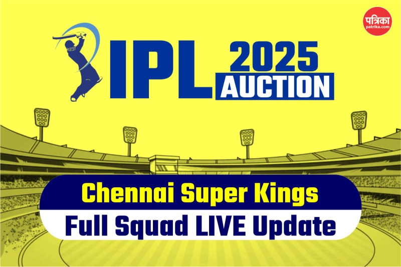 Chennai Super Kings full squad, IPL 2025 Mega Auction: इंडियन प्रीमियर लीग (IPL) 2025 का मेगा ऑक्शन जारी है। पांच बार की चैम्पियन चेन्नई सुपर किंग्स (CSK) ने ऑक्शन से पहले पांच खिलाड़ियों को रिटेन किया था। ऑक्शन में चेन्नई ने अपने सलामी बल्लेबाज डेवोन कॉनवे को फिर से 6.25 करोड़ में खरीद लिया है। इसके अलावा सीएसके ने राहुल त्रिपाठी को 3.40 करोड़ में खरीदा है।