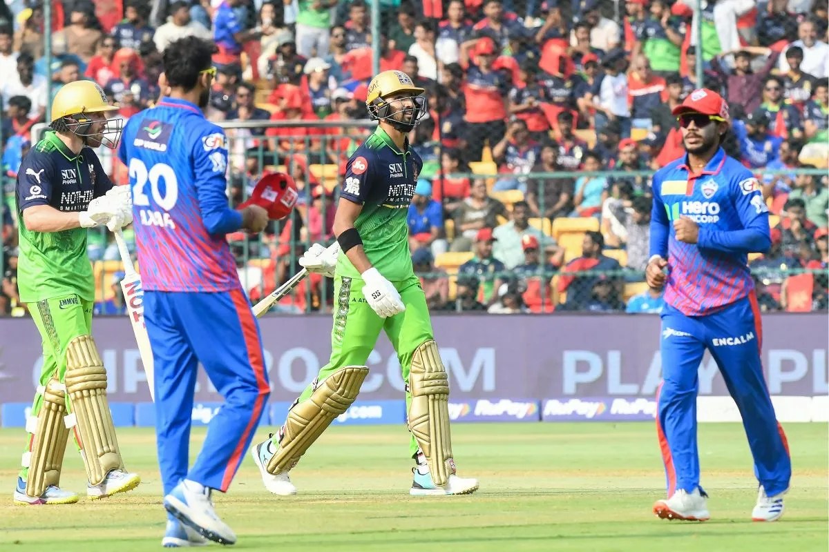 इसके बाद देवदत्त पडिक्कल 18 रन बनाकर अक्षर पटेल का शिकार बने। मुकेश कुमार ने कप्तान रजत पाटीदार को पवेलियन भेजा, जबकि अक्षर पटेल ने टिम डेविड को 26 रन पर आउट किया। उधर कुलदीप यादव ने अर्धशतक जमाने वाले फिल सॉल्ट को 63 रन पर आउट किया। सॉल्ट ने 38 गेंदों में 4 चौके और 3 छक्कों की मदद से 63 रन बनाए।