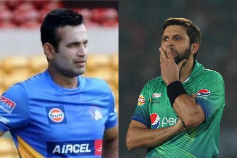 पूर्व भारतीय ऑलराउंडर इरफान पठान और पाकिस्तानी खिलाड़ी शाहिद अफरीदी। (फोटो सोर्स: IANS)