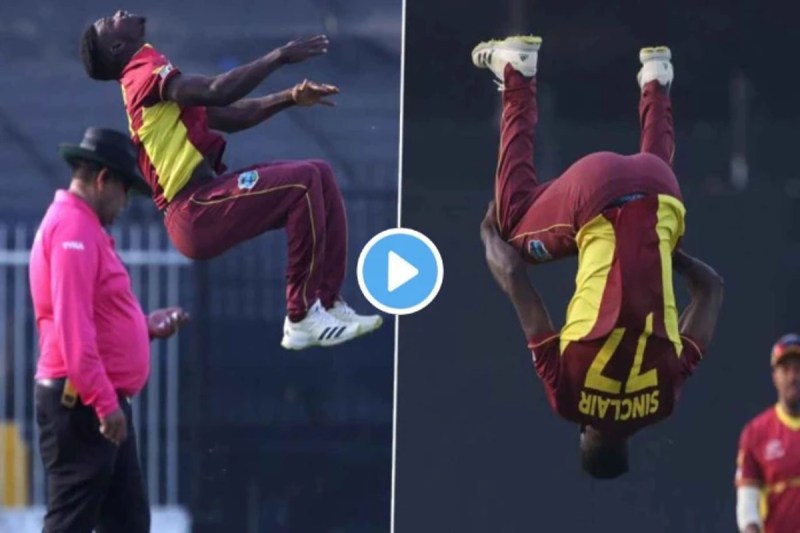 WI vs UAE : वेस्टइंडीज ने यूएई को उसी के घर में तीन वडे मैचों की सीरीज में 3-0 हराकर खिताब पर कब्जा कर लिया है। आखिरी मुकाबले में वेस्टइंडीज की जीत के हीरो केविन सिंक्लेयर रहे। सिंक्लेयर ने यूएई के खिलाफ जबरदस्त गेंदबाजी करते हुए चार विकेट हासिल किए। चौथा विकेट हासिल करते ही सिंक्लेयर ऐसा जश्न मनाया, जिसे देख हर फैंस ने दांतों तले उंगलियां दबा लीं। केविन सिंक्लेेेयर के अद्भुत स्टंट का वीडियो सोशल मीडिया पर तेजी से वायरल हो रहा है।