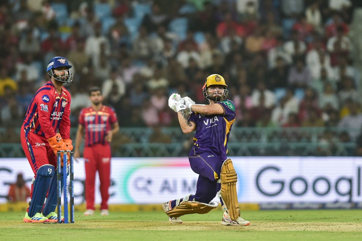 टॉस गंवाने के बाद पहले बल्लेबाजी करने उतरी केकेआर की शुरुआत एक बार फिर खराब रही। टिम सीफर्ट बिना खाता खोले मोहसिन खान का शिकार बने। इसके बाद अंगकृष रघुवंशी 9 रन बनाकर आउट हुए, तो कप्तान अजिंक्य रहाणे 15 गेंदों का सामना करने के बावजूद 10 रन ही बना सके। रोवमैन पॉवेल सिर्फ एक रन ही बना पाए। कैमरून ग्रीन ने टीम की लड़खड़ाती हुई पारी को कुछ हद तक संभालने का प्रयास किया, लेकिन वह 21 गेंदों में 34 रन बनाने के बाद अपना विकेट गंवा बैठे। ग्रीन ने अपनी पारी में 3 छक्के लगाए।
