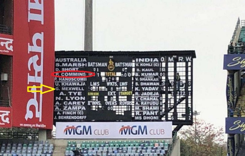मैक्सवेल और कमिंस के नाम की स्पेलिंग थी गलत