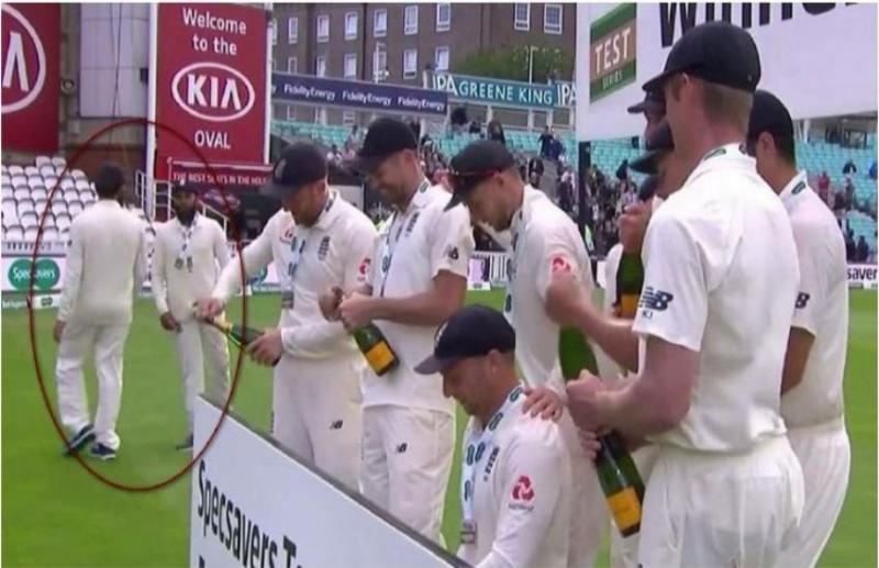 नई दिल्ली। भारत और इंग्लैंड के बीच पांच टेस्ट मैचों की सीरीज के आखिरी मैच को मेजबान इंग्लैंड ने 118 रनों के विशाल अंतर से जीत लिया है। सीरीज में मिली 4 -1 की जीत के बाद अंग्रेजी टीम ने खूब मजे किये। लेकिन सुर्ख़ियों में टीम के दो खिलाड़ी बने हुए हैं। ट्रॉफी जीतने के बाद इंग्लिश टीम के नौ खिलाड़ियों ने शैम्पेन की धार में खूब मस्ती की। लेकिन दो खिलाड़ी इस सेलिब्रेशन से कटे-कटे से दिखें। वजह यह बताई जा रही है की वो दोनों खिलाड़ी मुस्लिम हैं, इसलिए शैम्पेन के साथ इस सेलिब्रेशन में शरीक नहीं हो पाएं।