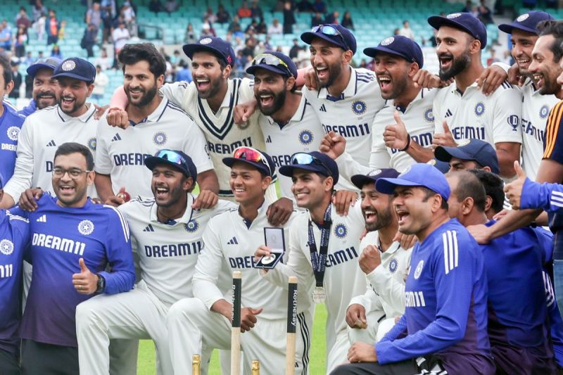 ओवल में जीत के बाद भारतीय टीम फोटो सेशन के दौरान (फोटो क्रेडिट-IANS)