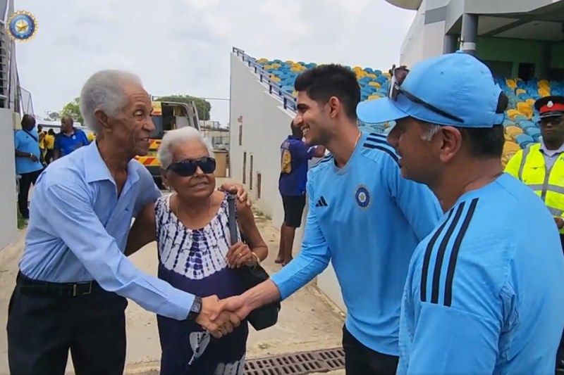 सर गैरी सोबर्स ने टीम के कप्तान रोहित शर्मा और विराट कोहली से भी बात की और उनसे मिलकर काफी नजर आए। वहीं जब शुभमन गिल की बारी आई तो टीम इंडिया के हेड कोच राहुल द्रविड़ ने उन्हें शानदार अंदाज में इंट्रोड्यूस कराया। द्रविड़ ने सर गैरी सोबर्स से कहा कि ये शुबमन गिल है, जो हमारी टीम के सबसे युवा रोमांचक बल्लेबाजों में से एक हैं। इस पर सोबर्स रिएक्ट करते हुए बोले- ओह।