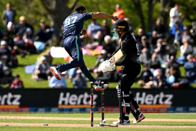 पाकिस्तान के लिए तेज गेंदबाज नसीम शाह और हारिस रऊफ को 2-2 विकेट झटके। वहीं शादाब खान और मोहम्मद नवाज़ ने एक-एक विकेट लिया। जवाब में पाकिस्तान की शुरुआत अच्छी नहीं रही। कप्तान बाबर आजम 14 गेंद पर 15 रन बनाकर ऑफ स्पिनर मिचेल ब्रेसवेल का शिकार हुए। इसके थोड़ी देर बाद शान मसूद भी 19 रन बनाकर पवेलियन लौट गए।