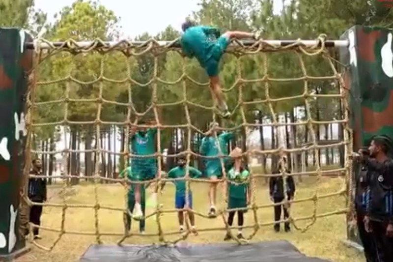 Pakistan Cricket Team Army Training: पाकिस्तान क्रिकेट टीम के खिलाड़ी टी20 वर्ल्ड कप 2024 से पहले काकुल के आर्मी स्कूल ऑफ फिजिकल ट्रेनिंग (ASPT) में ट्रेनिंग कर रहे हैं। सभी पाकिस्तानी खिलाड़ी 8 अप्रैल तक आर्मी लेवल की ट्रेनिंग करेंगे। पाकिस्तान क्रिकेट बोर्ड की ओर से हाल ही में इसके पीछे की वजह भी बताई गई थी। पीसीबी के चेयरमैन मोहसिन नकवी ने कहा था कि पाकिस्तानी टीम कुछ दिन आर्मी के साथ ट्रेनिंग कैंप करेगी, ताकि खिलाडि़यों को फिटनेस तेजी से पाने में मदद मिल सके। अब पाकिस्तान क्रिकेट टीम का एक वीडियो सोशल मीडिया पर वायरल हो रहा है, जिसमें खिलाड़ी आर्मी लेवल की ट्रेनिंग करते नजर आ रहे हैं।