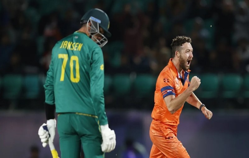 Paul Van Meekeren South Africa vs Netherlands, World Cup 2023: वर्ल्ड कप 2023 में मंगलवार को एक बार फिर बड़ा उलटफेर देखने को मिला। दक्षिण अफ्रीका और नीदरलैंड के बीच खील गए मुक़ाबले में डच टीम ने प्रोटीज़ के 'छक्के' छुड़ा दिये और 38 रनों से मात दी। इस उलटफेर में नीदरलैंड के लिए अहम भूमिका तेज एग्न्द्बज पॉल वान मीकेरेन ने निभाई।