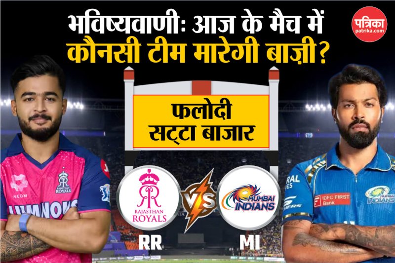 आईपीएल – इंडियन प्रीमियर लीग (IPL – Indian Premier League) के 18वें सीज़न का आज, गुरुवार, 1 मई को 50वां मैच खेला जाएगा। यह मैच राजस्थान रॉयल्स (Rajasthan Royals) और मुंबई इंडियंस (Mumbai Indians) के बीच जयपुर (Jaipur) में रॉयल्स के घरेलू सवाई मानसिंह स्टेडियम (Sawai Mansingh Stadium) पर खेला जाएगा। दोनों टीमें इस मैच को जीतकर प्लेऑफ में पहुंचने के अपने चांस और मज़बूत करना चाहेंगी। मुंबई के 10 मैचों में 6 जीत के साथ 12 पॉइंट्स हैं, तो दूसरी तरह राजस्थान के 10 मैचों में सिर्फ 3 जीत के साथ 6 पॉइंट्स ही हैं। पॉइंट्स टेबल पर मुंबई तीसरे स्थान पर है, तो राजस्थान आठवें स्थान पर। आज के मैच में अगर राजस्थान हारी, तो प्लेऑफ की रेस से बाहर हो जाएगी। मैच से पहले राजस्थान के फलोदी सट्टा बाजार (Phalodi Satta Bazar) ने इस बात की भविष्यवाणी की है कि राजस्थान रॉयल्स बनाम मुंबई इंडियंस (RR vs MI) के इस मैच में कौनसी टीम बाज़ी मारेगी।