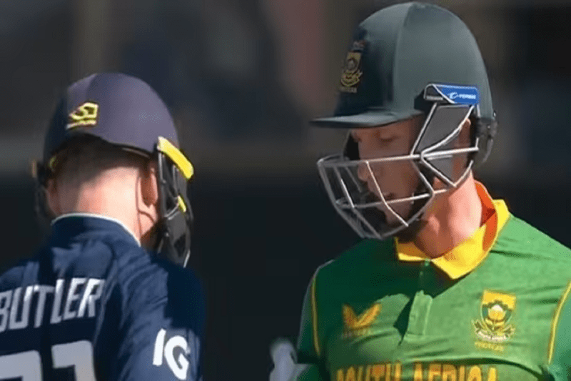 दरअसल दक्षिण अफ्रीकी पारी के 19वें ओवर में इंग्लिश गेंदबाज आदिल रशीद ने गुगली डाली, जो रसी को समझ नहीं आई। गेंद उनके बल्ले से अंदरुनी किनारा लेते हुए पैड में टकराई और हवा में चली गई। स्टम्प के नज़दीक खड़े बटलर ने ये देखकर तुरंत रिएक्ट किया और गेंद को लपकने की कोशिश की। लेकिन रसी ने बटलर के इस एक्शन को ब्लॉक कर दिया और इंग्लिश कप्तान कैच नहीं ले पाये। इसके बाद बटलर नाराज़ हो गए।