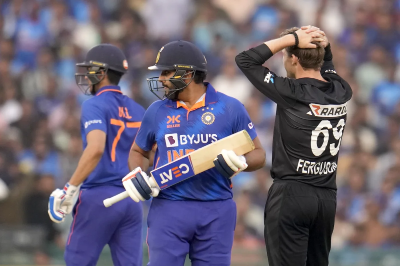 109 रनों के मामूली लक्ष्य का पीछा करते हुए भारत की शुरुआत धीमी रही। पहले तीन ओवर में टीम ने मात्र 6 रन बनाए। लेकिन इसके बाद रोहित शर्मा शुभमन गिल की सलामी जोड़ी ने तेजी से बल्लेबाजी करना शुरू किया और 14 ओवर में 72 रन जोड़ लिए। लेकिन तभी हेनरी शिपले की गेंद पर रोहित एलबीडबल्यू आउट हो गए और अर्धशतक बनाकर पवेलियन लौट गए। रोहित ने 50 गेंद पर 7 चौके और दो सिक्स की मदद से 51 रन बनाए।