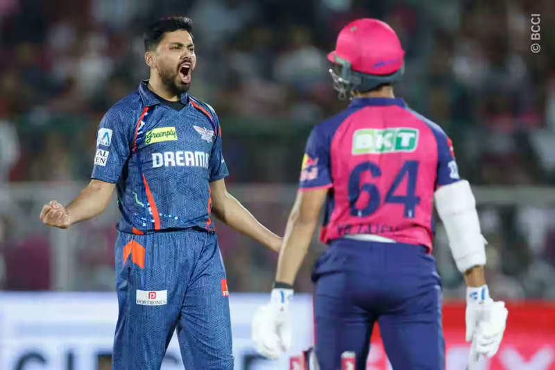 लखनऊ की इस जीत के नायक आवेश खान बने। राजस्थान 18वें ओवर की शुरुआत तक जीत के करीब जा चुका था मगर इसी ओवर में आवेश ने सेट बल्लेबाज यशस्वी जायसवाल (74) और कप्तान रियान पराग (39) का विकेट निकाल कर अपनी टीम की उम्मीदों को जिंदा किया। 19वें ओवर में प्रिंस यादव की धुलायी हेटमायर (12) ने की और अब आखिरी ओवर में आवेश के कंधों पर हार बचाने की जिम्मेदारी थी। आवेश ने अपनी सभी गेंदे यार्कर डाली और खतरनाक हेटमायर को चलता कर अपनी टीम को जीत की दहलीज दिखा दी और राजस्थान की उम्मीदों का तुषारापात कर दिया।