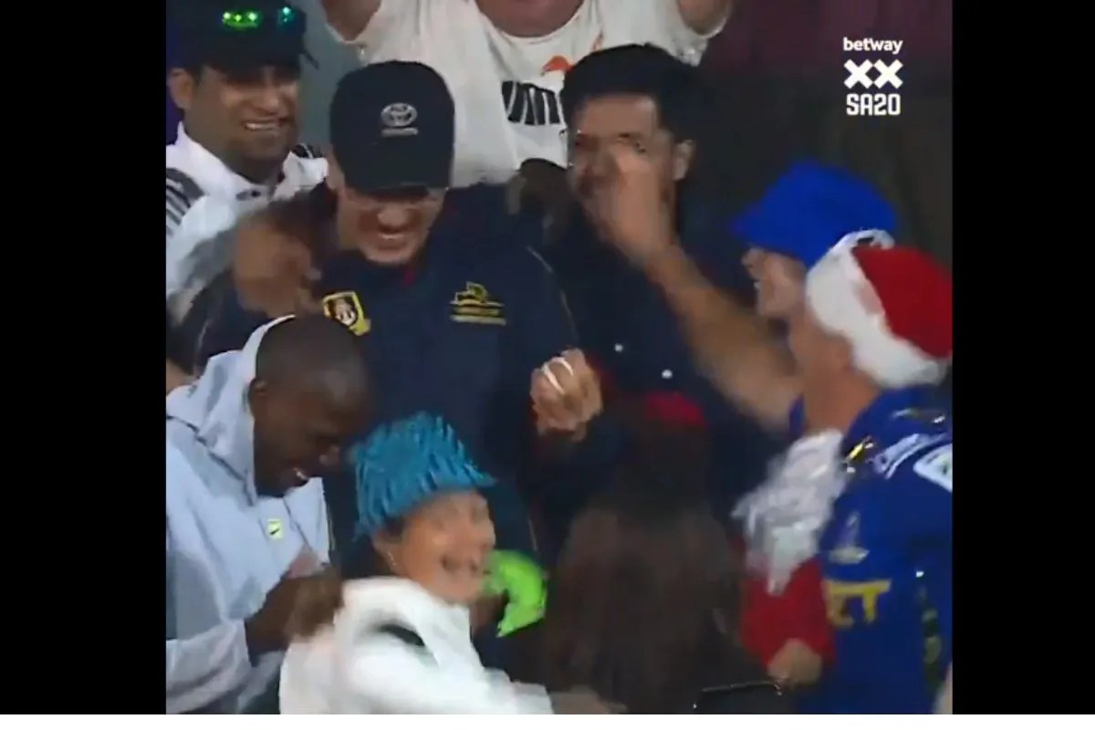 SA20 में एक हाथ से कैच पकड़ने वाला दर्शक। (फोटो सोर्स: वीडियो स्क्रीन शॉट)