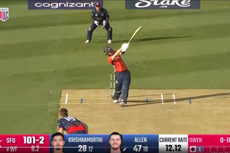 MLC 2025 Highlights: मेजर क्रिकेट लीग 2025 का मुकाबला आज शनिवार 13 जून को सैन फ्रांसिस्को यूनिकॉर्न और वाशिंगटन फ्रीडम के बीच खेला गया। इस मुकाबले में फिन एलन की एतिहासिक 151 रन की पारी के दम पर सैन फ्रांसिस्को ने पहले बल्लेबाजी करते हुए निर्धारित 20 ओवर में पांच विकेट के नुकसान पर 269 रनों का विशाल स्कोर बनाया है। इसके जवाब में वाशिंगटन फ्रीडम की पूरी टीम 13.1 ओवर में महज 146 रन पर सिमट गई। इस तरह यूनिकॉर्न ने 123 रन की बड़ी जीत के साथ टूर्नामेंट में जबरदस्त आगाज किया है।