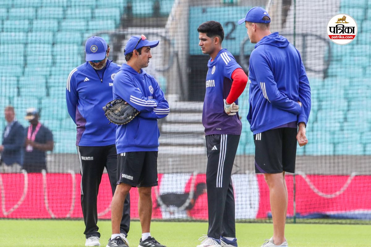 टीम इंडिया के हेड कोच गौतम गंभीर टेस्ट कप्तान शुभमन गिल से चर्चा करते हुए (फोटो- IANS)