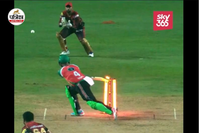 दरअसल, शाई होप 28 गेंदों पर 3 चौके और एक छक्के साथ 39 रन बनाकर अर्धशतक की ओर बढ़ रहे थे। इस बीच ट्रिनबागो नाइट राइडर्स के गेंदबाज़ टेरेंस हिंड्स ने एक गेंद ऑफ स्टंप के बाहर फेंकी। शाई होप इस पर रिवर्स रैंप शॉट खेलने का प्रयास करते हुए पूरी ताकत के साथ बल्ला घुमाया। वह लाइन के पार भी चले गए और बल्ले से अपना कंट्रोल खोते हुए बैट सीधा विकेट पर दे मारा।