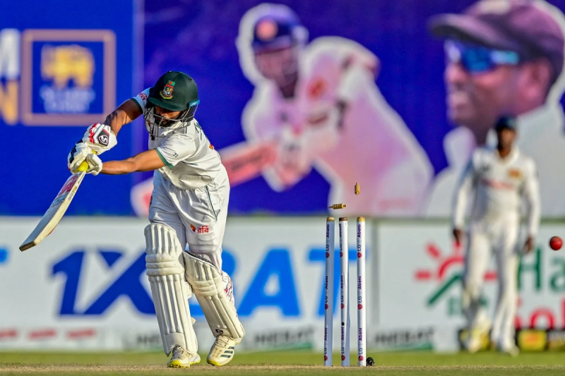 इसके बाद मिलन रत्नायके ने जाकेर अली (आठ) को बोल्ड कर दिया। तैजुल इस्लाम (छह) भी मिलन रत्नायके का शिकार बने। नईम हसन (11) को भी मिलन रत्नायके ने आउट किया। दिन का खेल समाप्त होने के समय बांग्लादेश ने 151 ओवर में नौ विकेट पर 484 रन बना लिये। हसन महमूद और नाहिद राणा अपना खाता खोले बगैर क्रीज पर मौजूद है। श्रीलंका की ओर से थरिंडु रत्नायके, असिता फर्नांडो और मिलन रत्नायके ने तीन-तीन विकेट लिये।