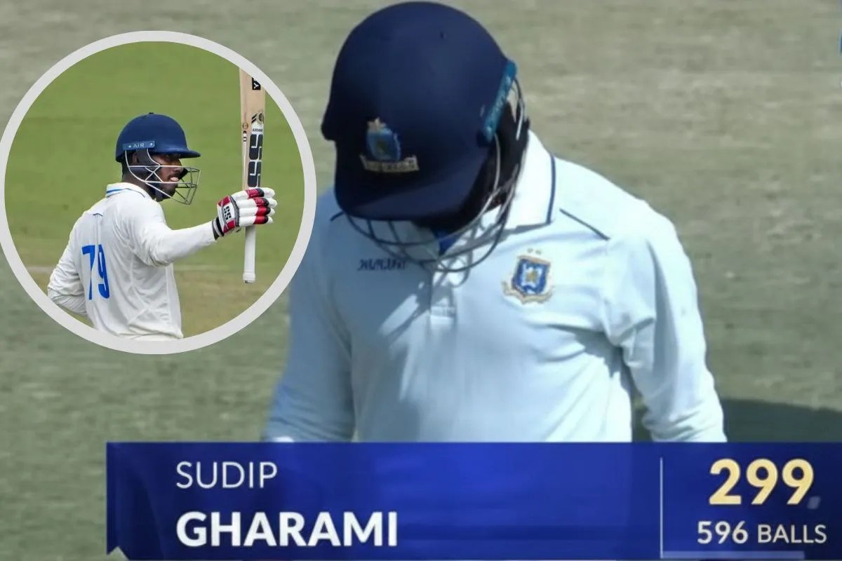 कल्याणी के बंगाल क्रिकेट एकेडमी में चल रहे इस मैच के चौथे दिन, नंबर 3 पर बल्लेबाजी करने आए सुदीप 300 रनों के ऐतिहासिक आंकड़े की ओर बढ़ रहे थे। आंध्र ने पहली पारी में 295 रन बनाए थे, लेकिन घरामी की शानदार बल्लेबाजी ने अकेले दम पर बंगाल को बड़ी बढ़त दिला दी।