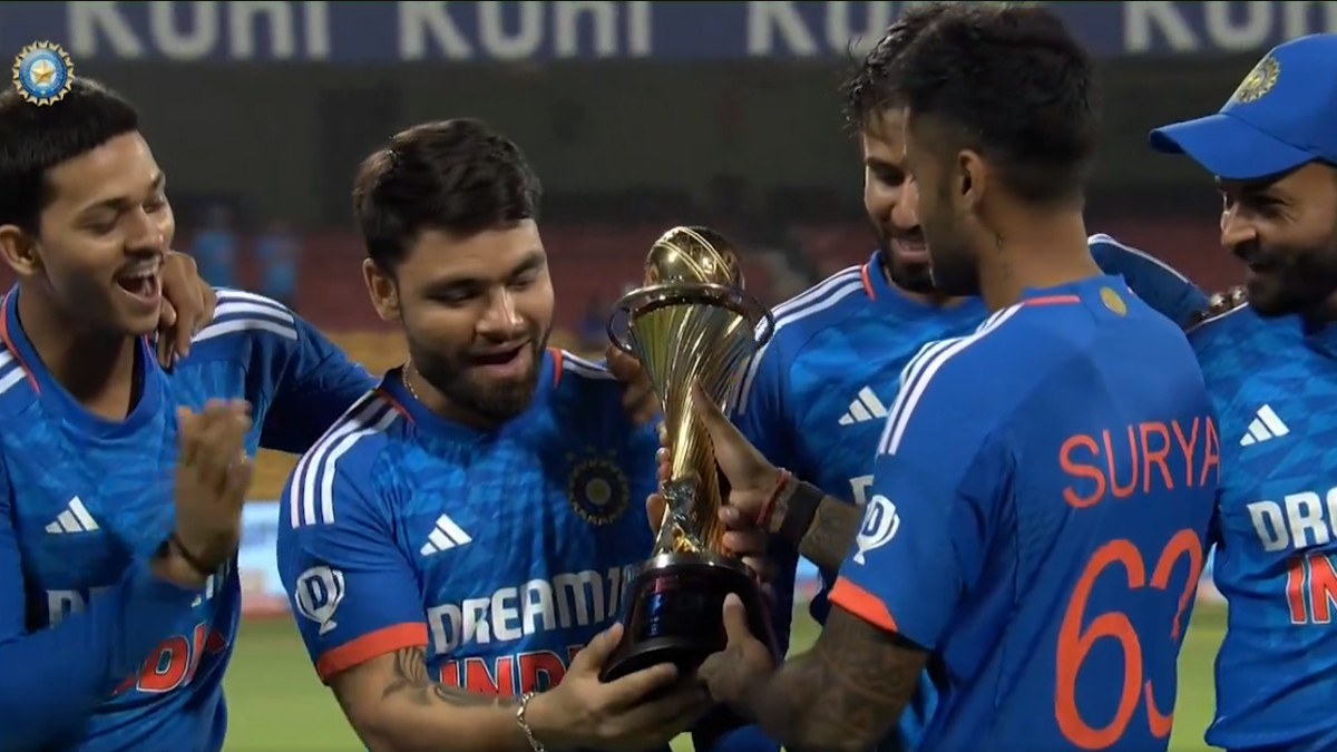 भारतीय टीम के पूर्व कप्तान एमएस धोनी ने वर्षों पहले सीरीज जीतने के बाद युवा खिलाडि़यों को ट्रॉफी के साथ जश्न मनाने का मौका देने की परंपरा शुरू की थी। एमएस धोनी के बाद कई कप्तान आए और गए, लेकिन उन्होंने इस परंपरा को कभी टूटने नहीं दिया। टीम इंडिया ने ऑस्ट्रेलिया के खिलाफ टी20 सीरीज 4-1 से जीती तो कप्तान सूर्यकुमार यादव ने भी परंपरा को निभाते हुए ट्रॉफी रिंकू सिंह और जितेश शर्मा के हाथों में दी। बीसीसीआई ने इस पल का एक वीडियो अपने सोशल मीडिया अकाउंट से शेयर किया है, जिसे फैंस काफी पसंद कर रहे हैं।