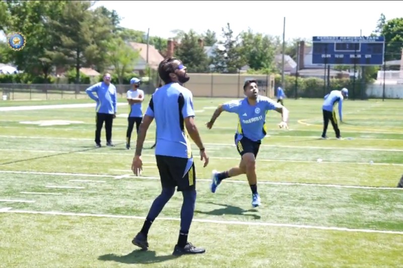 T20 World Cup 2024 IND vs BAN Warm-up Match: भारतीय टीम टी20 वर्ल्ड कप 2024 के लिए अमेरिका पहुंच चुकी है। टीम इंडिया के पहले बैच में विराट कोहली को छोड़कर बाकी सभी खिलाड़ी अमेरिका पहुंच गए हैं। रिपोर्ट की मानें तो कोहली 30 मई तक टीम इंडिया से जुड़ जाएंगे। इसके साथ ही दूसरे बैच के खिलाड़ी भी अमेरिका पहुंच जाएंगे। टीम इंडिया को इस बार सिर्फ कए वार्म अप मैच बांग्लादेश के खिलाफ 1 जून को खेलना है। भारतीय टीम ने बुधवार को पहले ट्रेनिंग सेशन में हिस्सा लिया। इस दौरान प्लेयर्स ने एक्सरसाइज के साथ फुटबॉल भी खेला। जिसका वीडियो बीसीसीआई ने अपने ऑफिशियल एक्स अकाउंट से शेयर किया है।