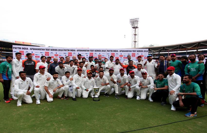 BCCI ने अपने आधिकारिक ट्विटर हैंडल पर भारत द्वारा प्रेजेंटेशन सेरेमनी में ट्रॉफी मिलने पर अफगनिस्तान की टीम को बुलाकर उनके साथ फोटो खिचाने के शानदार पलों का वीडियो ट्वीट किया है। हुआ यह कि भारतीय टीम को विनिंग ट्रॉफी मिली, कप्तान अजिंक्य रहाणे ने अफगानिस्तान के कप्तान को ट्रॉफी के साथ मिलकर फोटो खिचवाने को कहा और दोनों टीमों ने एक साथ ट्रॉफी के साथ फोटो खिचवाई। ऐसा सायद क्रिकेट इतिहास में पहली बार हुआ होगा कि विजेता ट्रॉफी के साथ जीतने के साथ हारने वाली टीम ने भी फोटो खिचवाई हो।