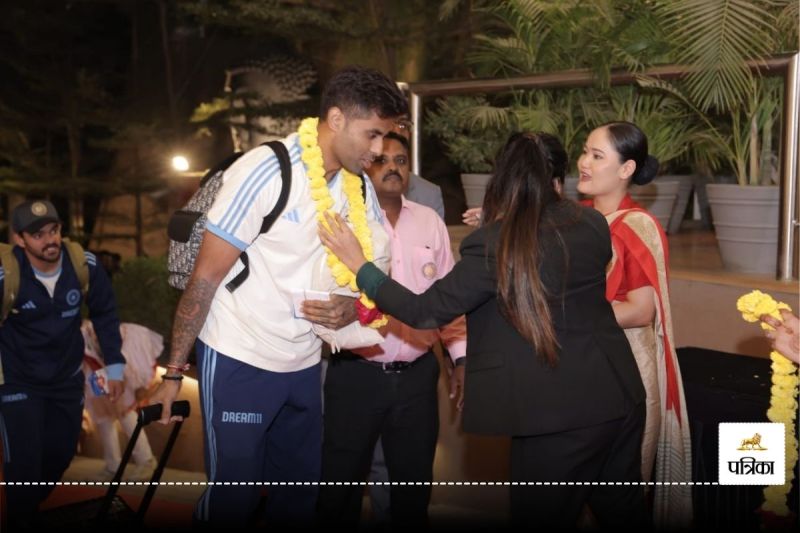 Team India Grand Welcome in Rajkot: सूर्यकुमार यादव की कप्तानी में टीम इंडिया इंग्लैंड के खिलाफ तीसरा टी20 अंतरराष्ट्रीय मैच मंगलवार 28 जनवरी को राजकोट में खेलेगी। इसके लिए भारतीय टीम रविवार देर रात राजकोट पहुंची, जहां फैंस ने टीम का बेहद गर्मजोशी से स्वागत किया। चेन्नई में शनिवार को दूसरा मैच दो विकेट से जीतकर भारत पांच मैचों की टी20 सीरीज में 2-0 से आगे चल रहा है। 166 रनों के लक्ष्य का पीछा करते हुए तिलक वर्मा की नाबाद 78 रनों की पारी ने एमए चिदंबरम स्टेडियम में रोमांचक मुकाबले में चार गेंद शेष रहते टीम को जीत दिलाई थी। अब टीम की नजर राजकोट का मुकाबला जीतकर सीरीज कब्जाने पर होगी।