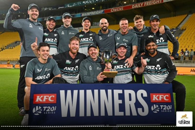 New Zealand vs Pakistan, 5th T20: न्यूजीलैंड ने वेलिंग्टन बुधवार को पांच मैचों की टी-20 अंतरराष्ट्रीय सीरीज के 5वें और आखिरी मुकाबले में 60 गेंद शेष रहते हुए पाकिस्तान को 8 विकेट से हराया। न्यूजीलैंड ने टॉस जीतकर पाकिस्तान को पहले बल्लेबाजी के लिए आमंत्रित किया। पाकिस्तान ने निर्धारित 20 ओवर में 9 विकेट के नुकसान पर 128 रन बनाए। पाकिस्तान की ओर से कप्तान सलमान आगा, शादाब खान और मोहम्मद हारिस ही न्यूजीलैंड के गेंदबाजों का कुछ हद तक सामना कर सके। जवाब में न्यूजीलैंड ने 10 ओवर में ही 2 विकेट के नुकसान पर 131 रन बनाकर लक्ष्य हासिल कर लिया। इस तरह न्यूजीलैंड ने पांच मैचों की टी-20 अंतरराष्ट्रीय सीरीज पाकिस्तान से 4-1 से अपने नाम कर ली।