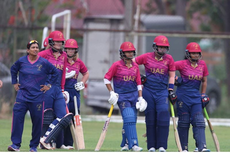 यूएई ने इस मैच में कतर के खिलाफ टॉस जीत पहले बल्लेबाजी करते हुए ईशा ओजा के शानदार शतक और तीर्था सतीश के अर्द्धशतक से 16 ओवर में बिना विकेट गंवाए 192 रन बनाए। इस मैच में बारिश का पूर्वानुमान था, लेकिन वह क्वालीफाइंग प्रक्रिया के किसी भी पहलू को मौसम के भरोसे नहीं छोड़ना चाहता था। ऐसे में टी-20 प्रारूप में पारी घोषित करने का कोई प्रावधान नहीं था। ऐसे में यूएई के बल्लेबाज सभी बल्लेबाज क्रीज पर आए और बिना कोई गेंद का सामना किए बिना एक-एक करके रिटार्यड आउट हो गए और पारी 192/10 पर समाप्त हो गई।