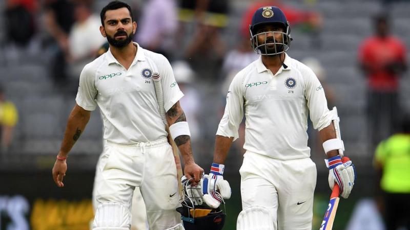 स्टंप्स के समय कोहली 111 गेंदें और रहाणे 140 गेंदें खेलकर नाबाद लौटे। दोनों बल्लेबाजों के बीच चौथे विकेट के लिए अब तक 104 रनों की साझेदारी हो चुकी है। कप्तान कोहली का यह 21वां और उप-कप्तान रहाणे का यह 19वां अर्धशतक है।