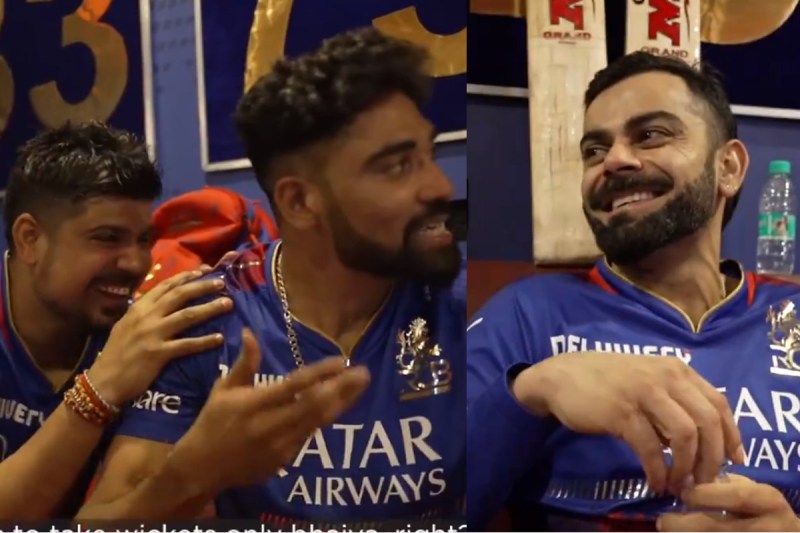 RCB vs DC: विराट कोहली इस आईपीएल सीजन में जबरदस्त फॉर्म में हैं। इस सीजन में आरसीबी अपने पहले 8 मैच में से सिर्फ एक मैच ही जीत सकी थी। 7 मैच हारने के बाद उसके प्लेऑफ में पहुंचने की उम्मीद लगभग खत्म ही हो गई थी, लेकिन इसके बाद उसने शानदार कमबैक करते हुए बैक-टू-बैक पांच जीत दर्ज की। इस सीजन में लगातार पांच जीत दर्ज करने वाली आरसीबी पहली टीम है और फिर से प्लेऑफ की दौड़ में शामिल हो चुकी है। दिल्ली कैपिटल्स के खिलाफ जीत के बाद आरसीबी के ड्रेसिंग रूम का एक वीडियो तेजी से वायरल हो रहा है, जिसमें विराट सिराज के मजे लेते नजर आ रहे हैं।