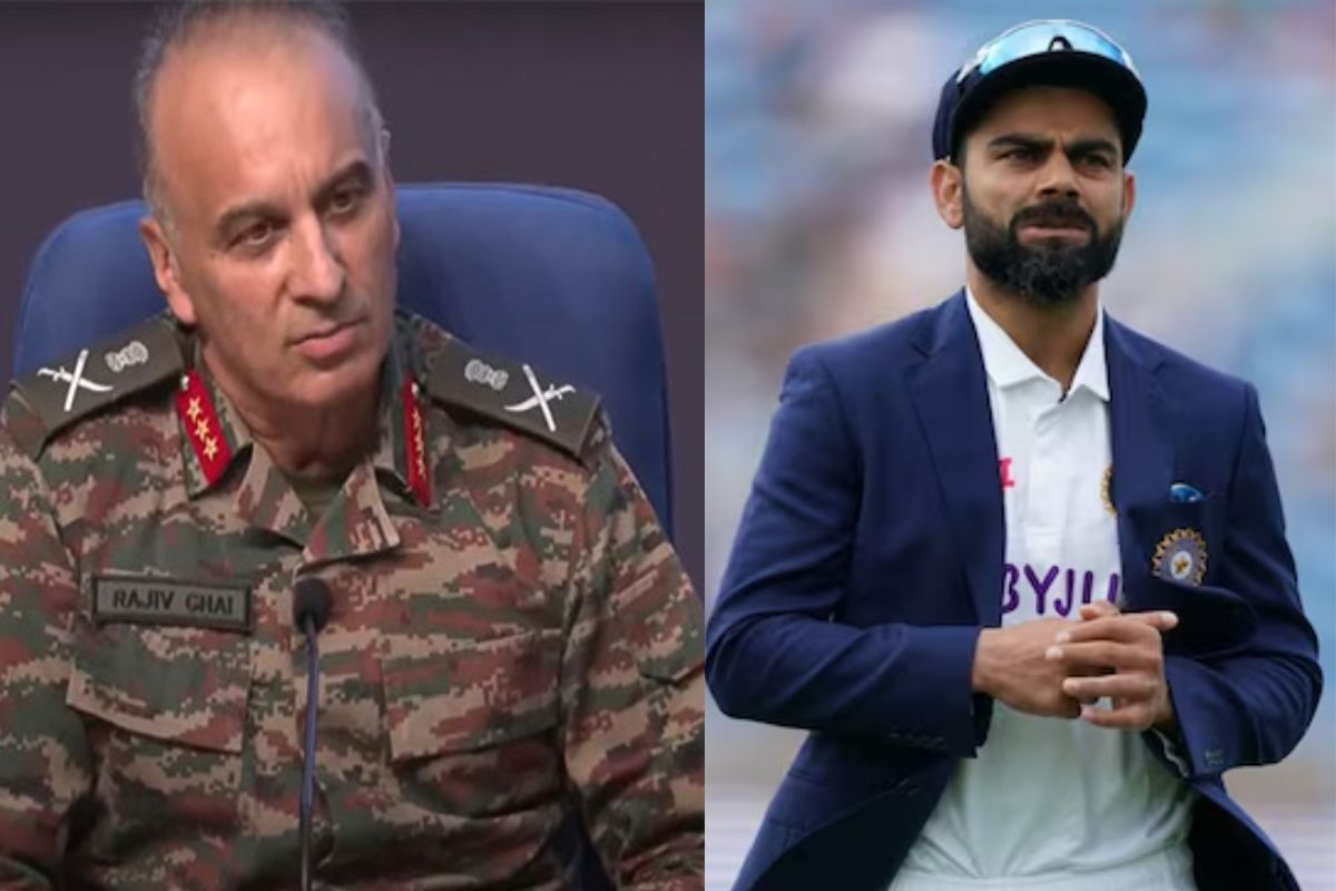 Indian Army DGMO Rajiv Ghai on Virat Kohli Test Cricket Retirement: भारत-पाकिस्तान संघर्ष और 'ऑपरेशन सिंदूर’ पर भारत की तीनों सेनाओं ने सोमवार को संयुक्त प्रेस कॉन्फ्रेंस की। भारतीय सेना ने पाकिस्तानी मिराज के मलबे की क्लिप भी दिखाई, साथ ही पीएल-15 एयर-टू-एयर मिसाइल का मलबा दिखाया। इसी दौरान डीजीएमओ लेफ्टिनेंट जनरल राजीव घई ने भारत के एयर डिफेंस को लेकर चर्चा करते हुए अचानक विराट कोहली के संन्यास का भी जिक्र किया।