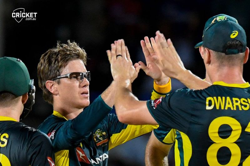 West Indies vs Australia 5th T20i Highlights: जीत की खुशी मनाते ऑस्ट्रेलिया के खिलाड़ी। (फोटो सोर्स: एक्स@/cricketcomau)