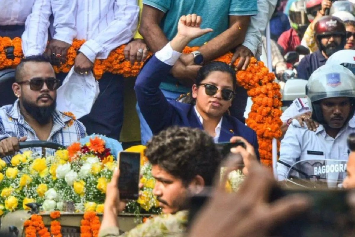 बंगाल पहुंचने पर ऋचा घोष का भव्य स्वागत हुआ। (फोटो सोर्स: एक्स@/mufaddal_vohra)