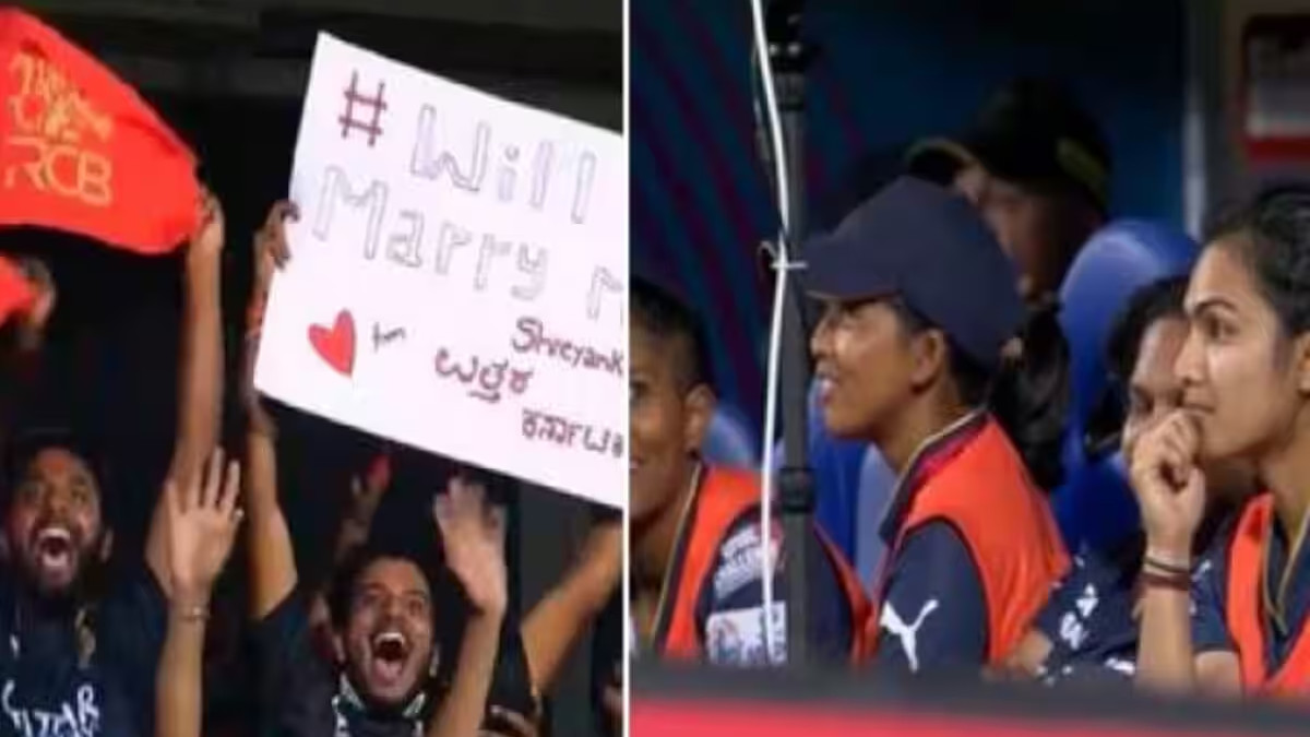 प्लेकार्ड जैसे ही टीवी पर दिखा तो डगआउट में बैठे आरसीबी की सभी महिला खिलाड़ी मुस्कुराती नजर आईं। अब सोशल मीडिया पर इस प्लेकार्ड का फोटो तेजी से वायरल हो रहा है। बता दें कि इससे पहले कई महिला फैन विभिन्न स्टेडियम में अपने पसंदीदा पुरुष क्रिकेटर को प्रपोज करती नजर आई हैं, लेकिन शायद यह पहली बार है, जब किसी पुरुष फैन ने महिला क्रिकेटर को शादी के लिए प्रपोज किया है।
