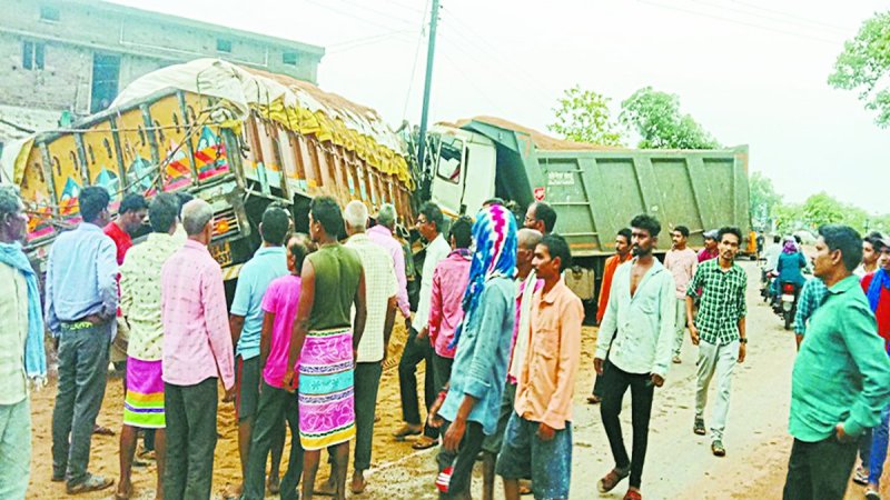 रेत से भरे तेज रफ्तार हाइवा ने चावल से भरे ट्रक को मारी टक्कर, दोनों के चालक घायल