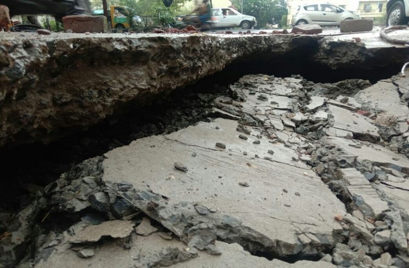 ये है राजधानी की सड़क : 7 महीने पहले बनी थी, उसी जगह दूसरी बार 2 फीट जमीन में धंस गई