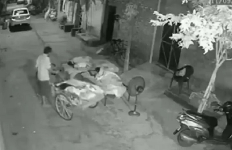 नई दिल्ली। पंजाब में एक बच्चा चोरी करने की कोशिश का वीडियो सामने आया है। लुधियाना शहर के ऋषि नगर में एक परिवार रात में घर के बाहर सो रहा था। इसमें एक चार साल की बच्ची भी सो रही थी। इसी दौरान एक कबाड़ी लेने वाला वहां पहुंचता है और सो रही मासूम को उठा कर ठेले पर रखता है। इसी दौरान उसकी मां जग जाती है और बच्ची को उसके हाथ से वापस छीन लेती है। उसके बाद वह जोर-जोर से चिल्लाने लगती है।